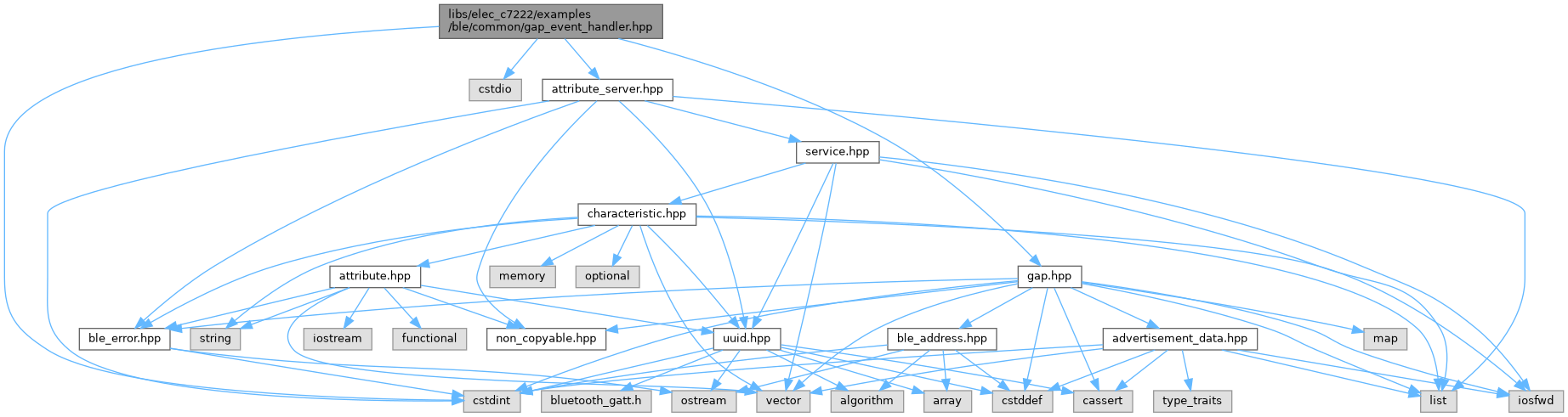 This header declares a small helper class that implements c7222::Gap::EventHandler and prints GAP events to the console. It is used by BLE examples to track the state of advertising, scanning, and connections without adding application-specific behavior. The intent is educational: demonstrate how to register a handler and what information is available in each callback.